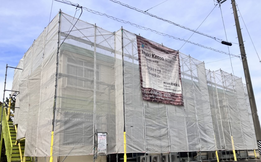 【外壁塗装工事】養生作業→軒天・外壁塗装(3回塗り)